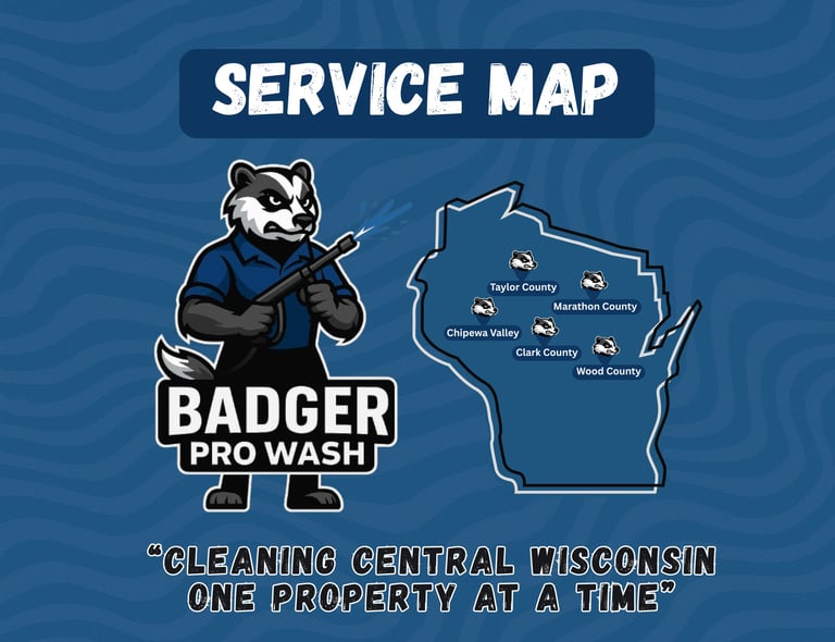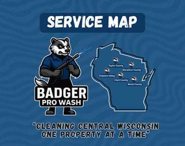 Badger Pro Wash proudly serves a wide area, covering the entire Chippewa Valley and stretching all the way to Wausau, Marshfield, Neillsville, and everywhere in between. No matter where you’re located in Central Wisconsin, our team is ready to bring professional, reliable exterior cleaning right to your doorstep.